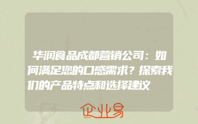 - 华润食品成都营销公司:如何满足您的口感需求?探索我们的产品特点和选择建议