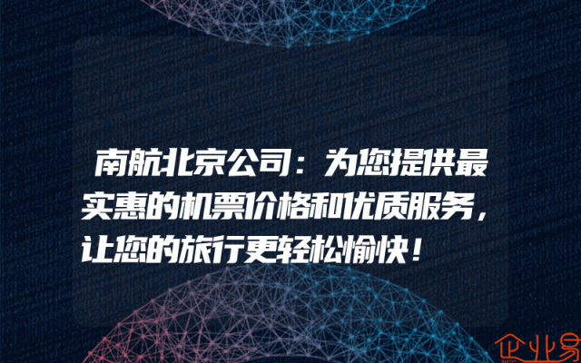 - 南航北京公司:为您提供最实惠的机票价格和优质服务,让您的旅行更轻松愉快!