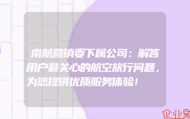 - 南航营销委下属公司:解答用户最关心的航空旅行问题,为您提供优质服务体验!