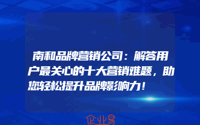 - 南和品牌营销公司:解答用户最关心的十大营销难题,助您轻松提升品牌影响力!