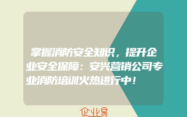 - 掌握消防安全知识,提升企业安全保障:安兴营销公司专业消防培训火热进行中!在当今社会,企业安全生产已经成为了每个企业必须重视的问题。特别是对于那些生产过程中涉及到易燃易爆物品的企业来说,消防安全更是不容忽视的一环。为了帮助企业提升消防安全意识