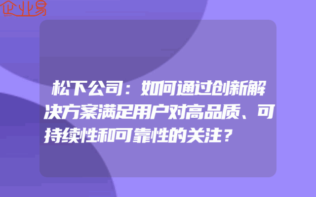 - 松下公司:如何通过创新解决方案满足用户对高品质、可持续性和可靠性的关注?