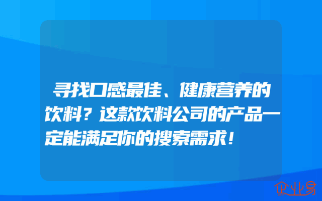 - 寻找口感最佳、健康营养的饮料?这款饮料公司的产品一定能满足你的搜索需求!