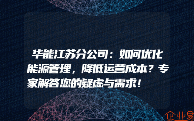- 华能江苏分公司:如何优化能源管理,降低运营成本?专家解答您的疑虑与需求!