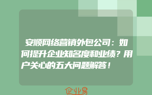 - 安顺网络营销外包公司:如何提升企业知名度和业绩?用户关心的五大问题解答!