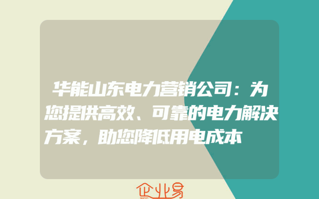 - 华能山东电力营销公司:为您提供高效、可靠的电力解决方案,助您降低用电成本