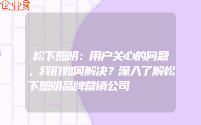 - 松下照明:用户关心的问题,我们如何解决?深入了解松下照明品牌营销公司