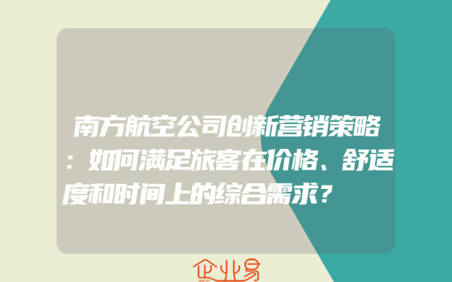 - 南方航空公司创新营销策略:如何满足旅客在价格、舒适度和时间上的综合需求?