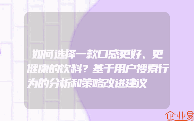 - 如何选择一款口感更好、更健康的饮料?基于用户搜索行为的分析和策略改进建议在当今快节奏的生活中,饮料成为了许多人日常生活中不可或缺的一部分。然而,市场上琳琅满目的饮料品种让人眼花缭乱,如何选择一款口感更好、更健康的饮料成为了许多人关注的问题