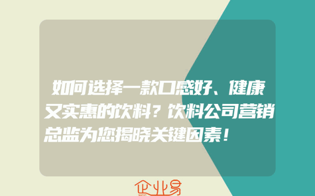 - 如何选择一款口感好、健康又实惠的饮料?饮料公司营销总监为您揭晓关键因素!