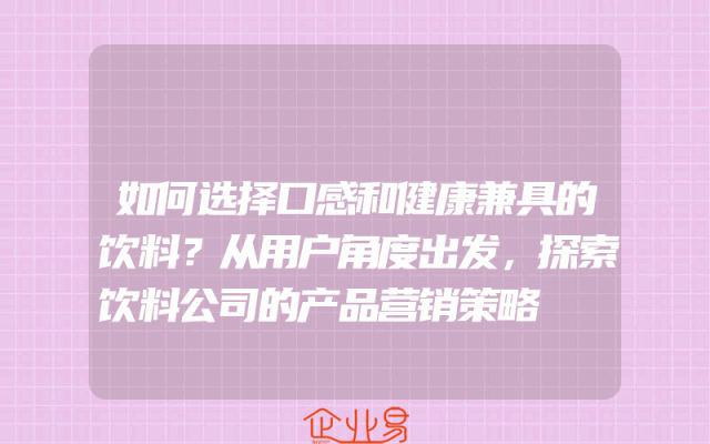 - 如何选择口感和健康兼具的饮料?从用户角度出发,探索饮料公司的产品营销策略