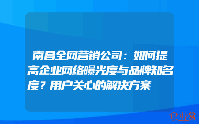 - 南昌全网营销公司:如何提高企业网络曝光度与品牌知名度?用户关心的解决方案