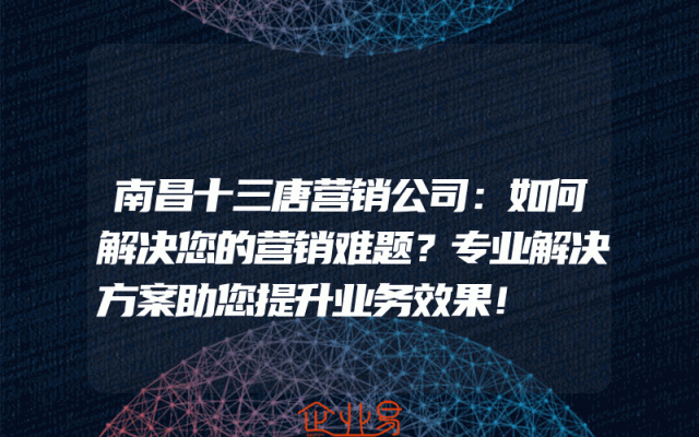 - 南昌十三唐营销公司:如何解决您的营销难题?专业解决方案助您提升业务效果!