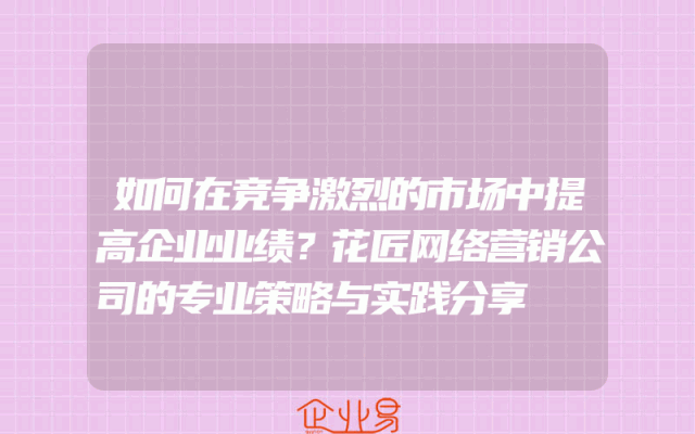 - 如何在竞争激烈的市场中提高企业业绩?花匠网络营销公司的专业策略与实践分享