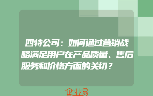 - 四特公司:如何通过营销战略满足用户在产品质量、售后服务和价格方面的关切?