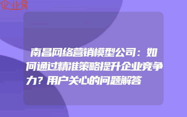 - 南昌网络营销模型公司:如何通过精准策略提升企业竞争力?用户关心的问题解答