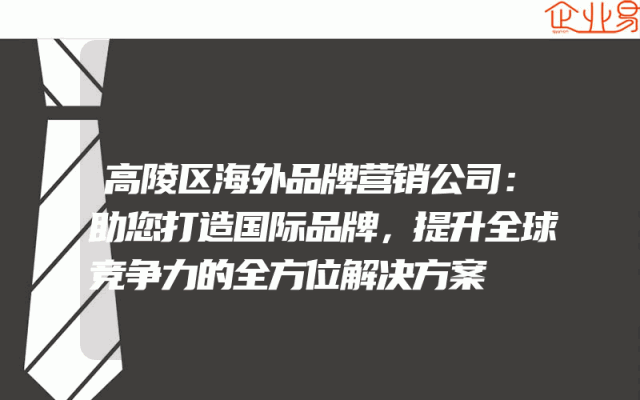 - 高陵区海外品牌营销公司:助您打造国际品牌,提升全球竞争力的全方位解决方案