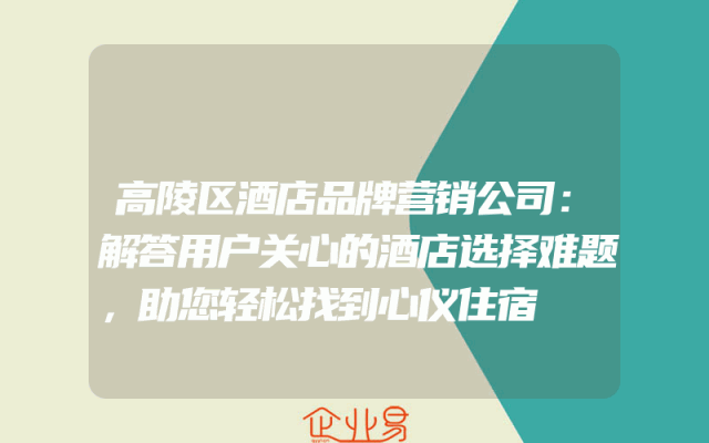 - 高陵区酒店品牌营销公司:解答用户关心的酒店选择难题,助您轻松找到心仪住宿