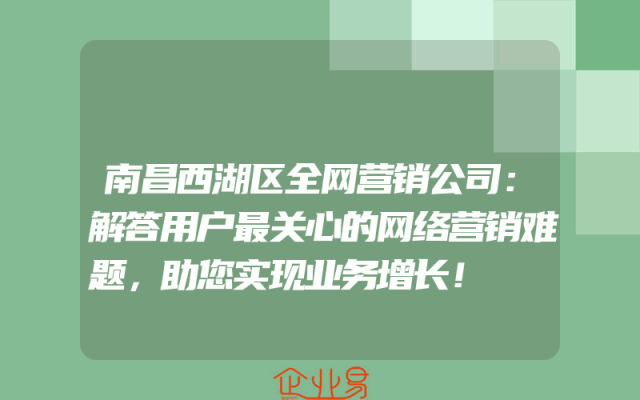 - 南昌西湖区全网营销公司:解答用户最关心的网络营销难题,助您实现业务增长!