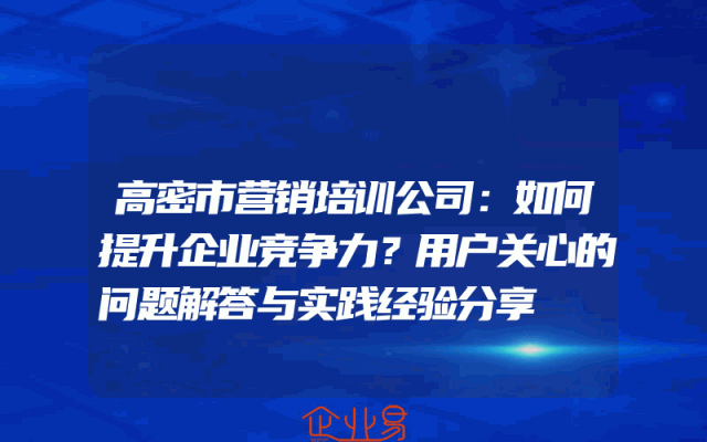 - 高密市营销培训公司:如何提升企业竞争力?用户关心的问题解答与实践经验分享