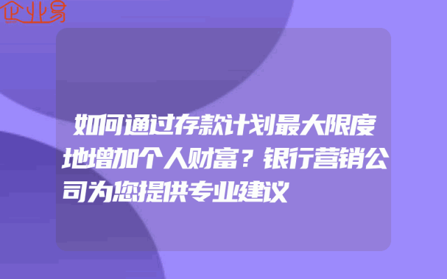 - 如何通过存款计划最大限度地增加个人财富?银行营销公司为您提供专业建议