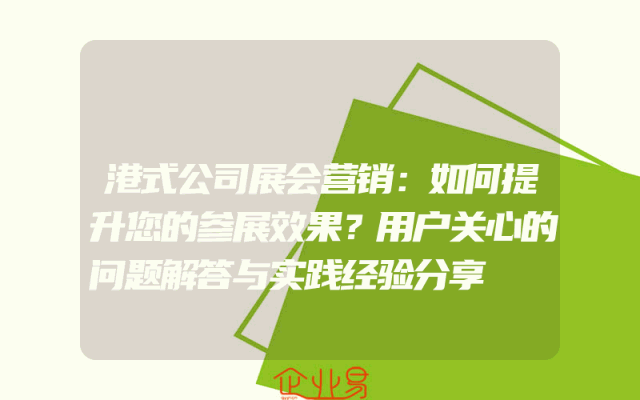 - 港式公司展会营销:如何提升您的参展效果?用户关心的问题解答与实践经验分享