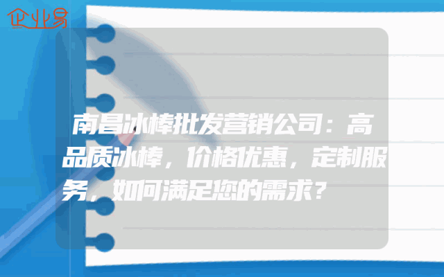 - 南昌冰棒批发营销公司:高品质冰棒,价格优惠,定制服务,如何满足您的需求?