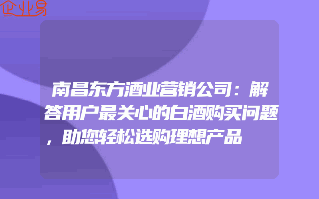 - 南昌东方酒业营销公司:解答用户最关心的白酒购买问题,助您轻松选购理想产品