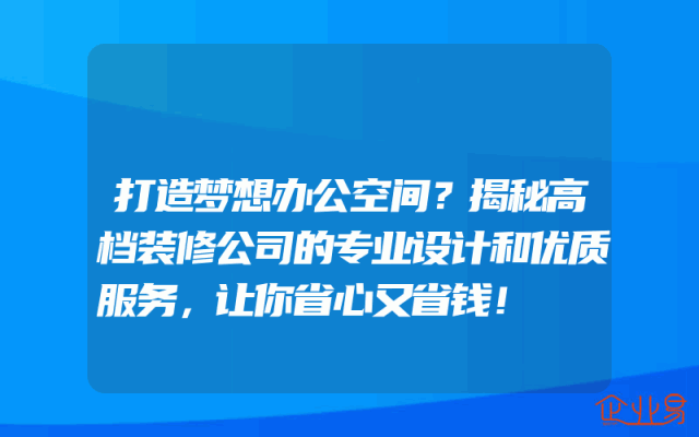 - 打造梦想办公空间?揭秘高档装修公司的专业设计和优质服务,让你省心又省钱!