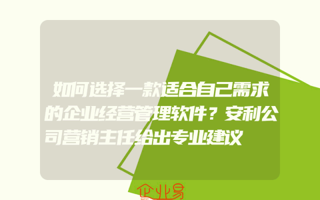 - 如何选择一款适合自己需求的企业经营管理软件?安利公司营销主任给出专业建议