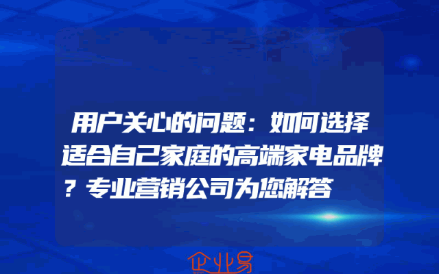 - 用户关心的问题:如何选择适合自己家庭的高端家电品牌?专业营销公司为您解答