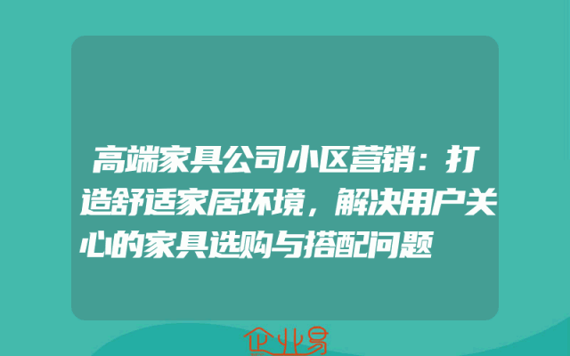 - 高端家具公司小区营销:打造舒适家居环境,解决用户关心的家具选购与搭配问题