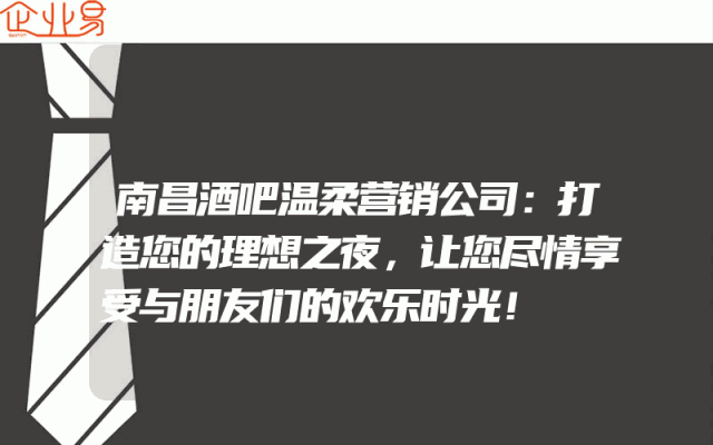 - 南昌酒吧温柔营销公司:打造您的理想之夜,让您尽情享受与朋友们的欢乐时光!在繁忙的工作和生活中,我们总是期待有一个可以放松身心、与朋友们欢聚一堂的地方。南昌酒吧温柔营销公司正是这样一个理想的场所,它致力于为您打造一个充满欢乐与温馨的夜晚,让您