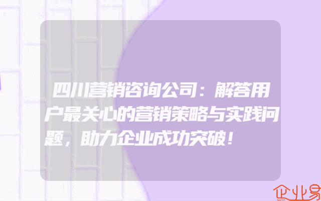 - 四川营销咨询公司:解答用户最关心的营销策略与实践问题,助力企业成功突破!