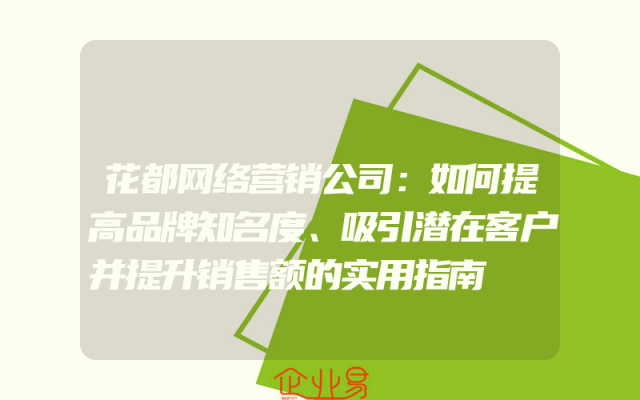 - 花都网络营销公司:如何提高品牌知名度、吸引潜在客户并提升销售额的实用指南