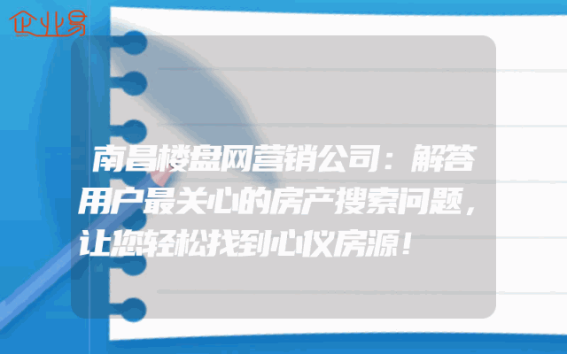 - 南昌楼盘网营销公司:解答用户最关心的房产搜索问题,让您轻松找到心仪房源!