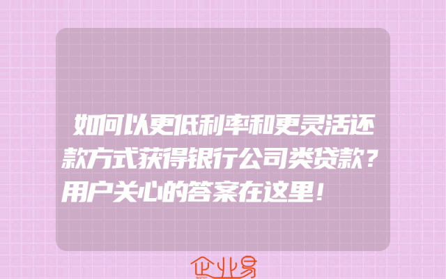 - 如何以更低利率和更灵活还款方式获得银行公司类贷款?用户关心的答案在这里!