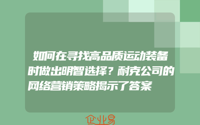 - 如何在寻找高品质运动装备时做出明智选择?耐克公司的网络营销策略揭示了答案