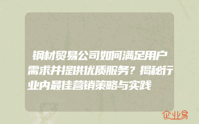 - 钢材贸易公司如何满足用户需求并提供优质服务?揭秘行业内最佳营销策略与实践