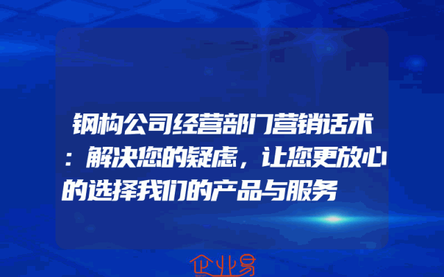 - 钢构公司经营部门营销话术:解决您的疑虑,让您更放心的选择我们的产品与服务