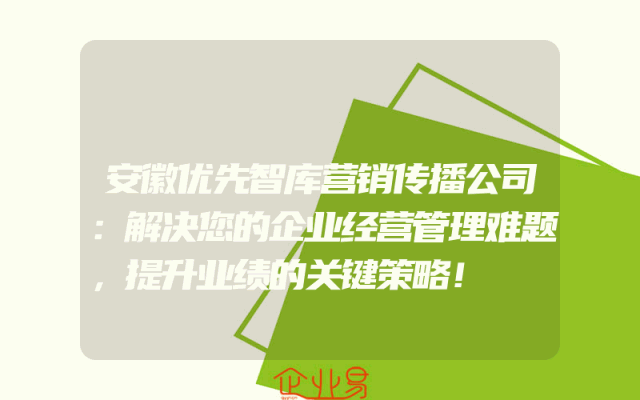 - 安徽优先智库营销传播公司:解决您的企业经营管理难题,提升业绩的关键策略!