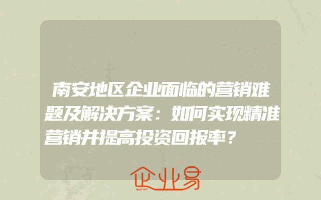 - 南安地区企业面临的营销难题及解决方案:如何实现精准营销并提高投资回报率?