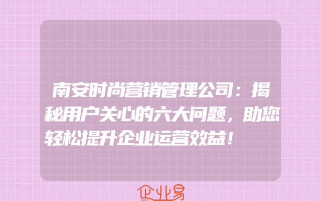 - 南安时尚营销管理公司:揭秘用户关心的六大问题,助您轻松提升企业运营效益!