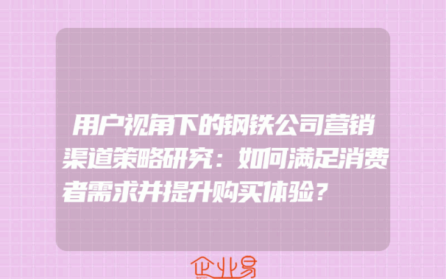 - 用户视角下的钢铁公司营销渠道策略研究:如何满足消费者需求并提升购买体验?