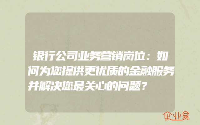 - 银行公司业务营销岗位:如何为您提供更优质的金融服务并解决您最关心的问题?