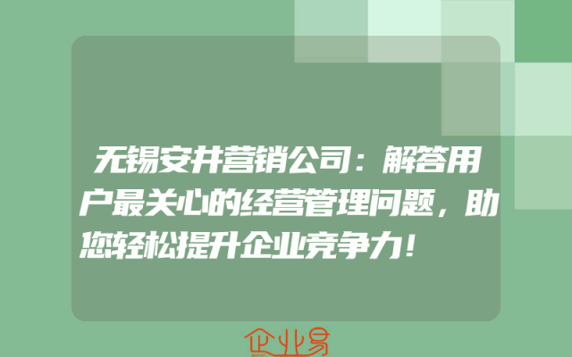- 无锡安井营销公司:解答用户最关心的经营管理问题,助您轻松提升企业竞争力!