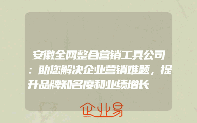 - 安徽全网整合营销工具公司:助您解决企业营销难题,提升品牌知名度和业绩增长