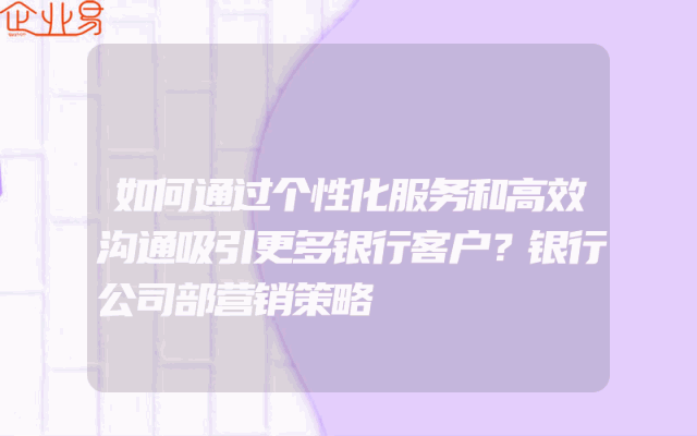 - 如何通过个性化服务和高效沟通吸引更多银行客户?银行公司部营销策略