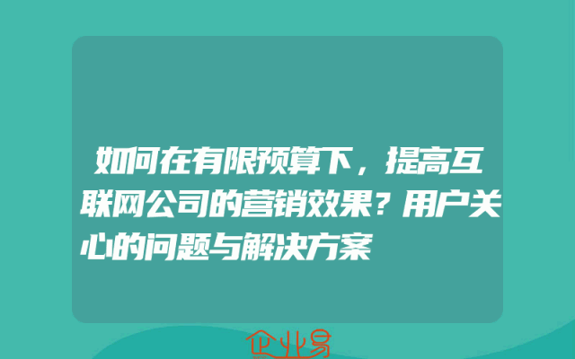 - 如何在有限预算下,提高互联网公司的营销效果?用户关心的问题与解决方案