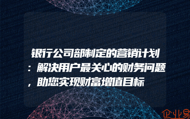 - 银行公司部制定的营销计划:解决用户最关心的财务问题,助您实现财富增值目标